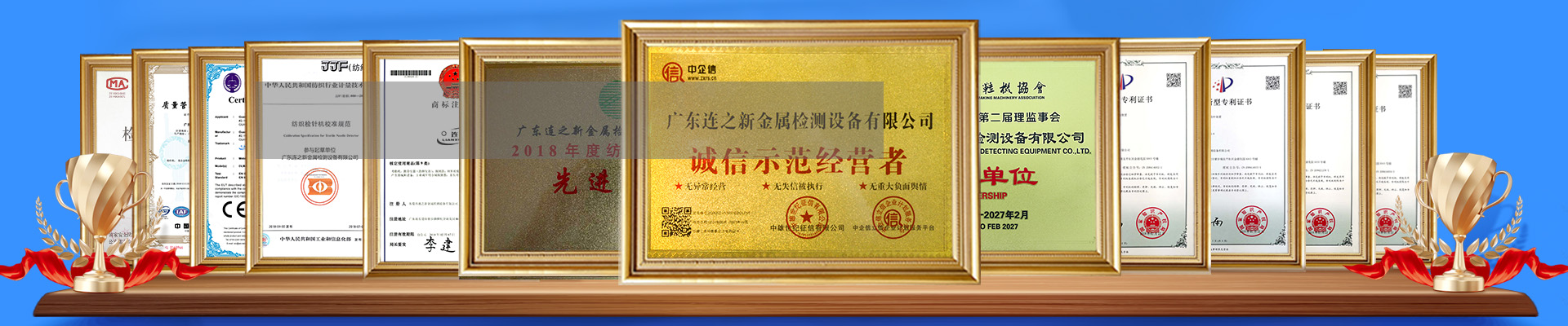 廣東連之新金屬檢測設備有限公司成立于2006年,是一家長期致力于金屬探測技術領域金屬探測儀器設備等專業(yè)研發(fā)、生產(chǎn)、銷售的科技型企業(yè)。擁有自主品牌:連新牌(商標注冊號5999209)及多項發(fā)明專利,擁有CE等多種產(chǎn)品類證書,是國家紡織檢針機校準規(guī)范JJF(紡織)080-2018起草單位。